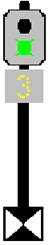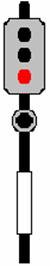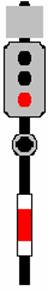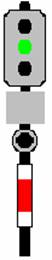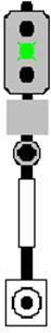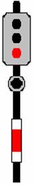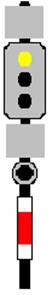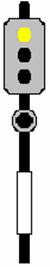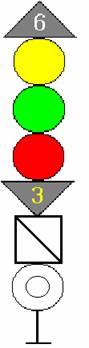 Fig. 5.15 Liber cu viteza stabilita. Semnalul urmator indica liber cu viteza redusa prevestita de catre indicatorul luminos prevestitor de viteza - 2, 3, 6, 8, 10. In figura, 3 inseamna 30 km/h.