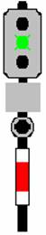 Ziua si noaptea: O lumina verde clipitoare, spre tren, indicatorul luminos de viteza indica viteza la semnal - cu cifre de culoare alba - iar indicatorul luminos prevestitor de viteza prevesteste viteza la semnalul urmator - cu cifre de culoare galbena.
