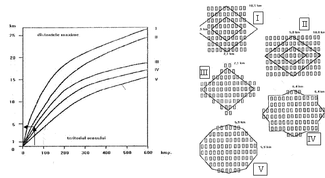 5.- Avind in vedere configuratia (forma IV) si marimea Timisoarei (60 Km2), distanta medie a unei deplasari dm= de 4 km (fig. de mai jos).
