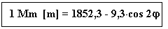 Datorita excentricitatii elipsoidului terestru, lungimea milei marine variaza functie de latitudine. Relatia de calcul a milei marine functie de latitudinea geografica este data de relatia (vezi si rel.9):