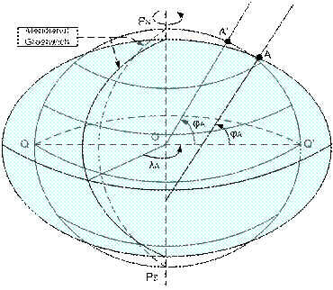 axa polilor si planul ecuatorului sunt elemente de referinta comune, atat pentru elipsoid, cat si pentru sfera terestra;