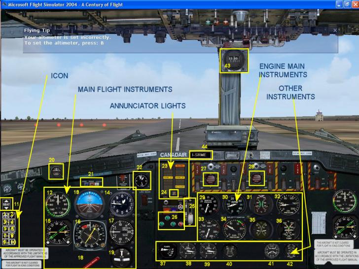 CL215 Panel information. Key to gauges and sub-panels.  Main panel 1 Throttle quadrant icon Shift+7 2 Kneeboard icon 3 GPS icon