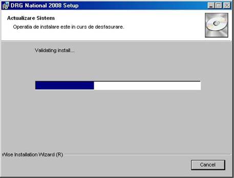 Pentru instalarea aplicatiei se descarca kitul de instalare disponibil in pagina www.drg.ro, in sectiunea Spitalizare Continua, si se ruleaza fisierul DRGNational2008.msi. In cazuri speciale spitalele vor fi anuntate cu privire la modalitati de actualizare a aplicatiei.