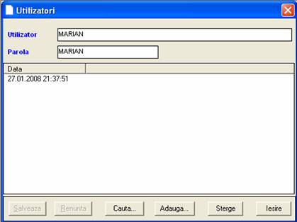 Selectand utilizatorul dorit si efectuand un dublu-click cu mouse-ul pe acesta se obtine incarcarea datelor in macheta principala, inclusiv informatii despre momentele de timp in care utilizatorul a accesat aplicatia: