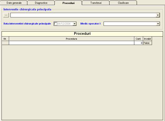 Proceduri: in aceasta sectiune se completeaza informatii cu privire la tratamentul aplicat pacientului, procedurile efectuate.
