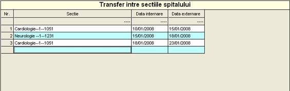 Selectand spitalul dorit si efectuand un dublu-click cu mouse-ul pe spitalul dorit se obtine incarcarea datelor in macheta principala, inclusiv datele despre sectiile configurate: