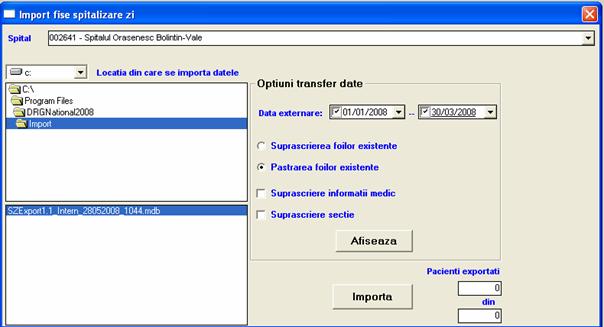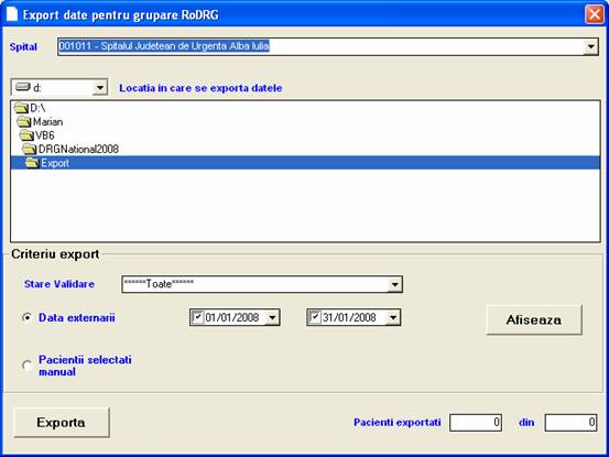 Important: pentru a se putea crea corect aceste fisiere, este obligatorie pastrarea fisierelor model: FisierExportIntern_Template.mdb, FisierExportSMDP_Template.mdb, RoDRG_Template.mdb in aceasta locatie.