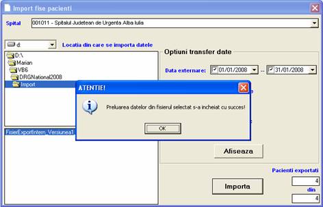 Prin intermediul butonului Select se alege baza de date DRGNational2008.mdb cautand in directorul Baza in noua cale in care a fost instalata aplicatia.