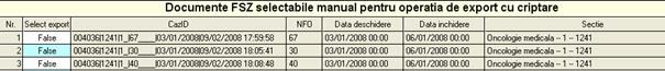 numai documentele FSZ selectate manual pentru export, situatie in care intervalul de externare este ignorat:
