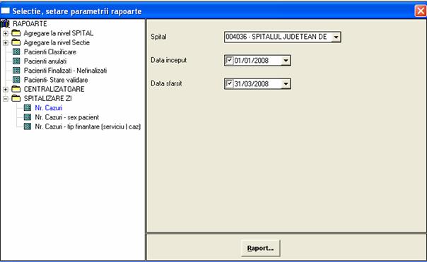 in baza criteriului format din campurile: Data inchidere fisa, interval externare, pentru spitalul afisat; este modul afisat implicit la deschiderea ferestrei.