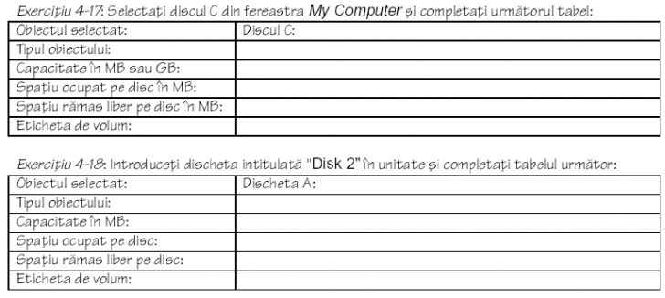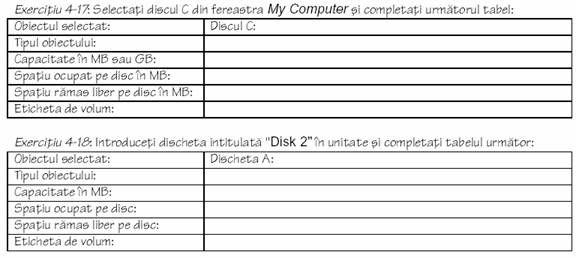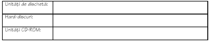 Exercitiu 4-2: Deschideti fereastra My Computer si notati mai jos configuratia unitatilor de stocare date de care dispune echipamentul Dvs. de calcul: