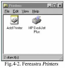 Pentru a vizualiza informatii despre imprimante se efectueaza dublu-click pe icon-ul intitulat Printers din fereastra My Computer si este afisata o noua fereastra: