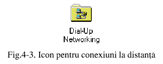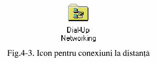 In cazul in care echipamentul de calcul dispune de un modem si acesta a fost instalat sub sistemul de operare MS Windows 9x, atunci in cadrul ferestrei My Computer este afisat si icon-ul Dial-Up Networking. El permite definirea si vizualizarea legaturilor la distanta si arata ca in figura urmatoare: