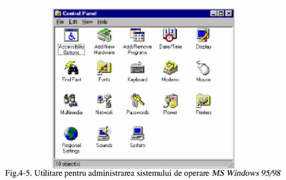 In vederea accesarii utilitarelor pentru administrarea sistemului de operare se efectueaza dublu-click pe icon-ul intitulat Control Panel