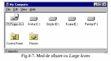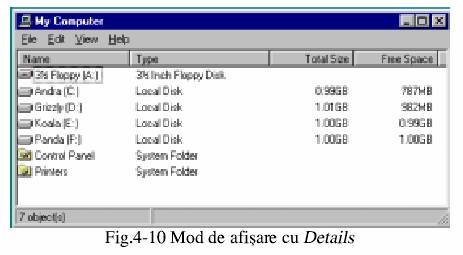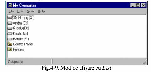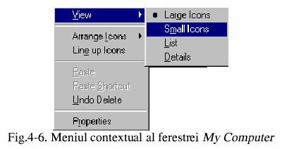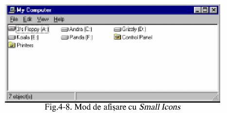 Small icons: pentru afisare vor fi utilizate icon-uri de dimensiune redusa, ca in figura4-8. Acest mod de afisare este util in cazul in care in fereastra My Computer exista foarte multe obiecte.