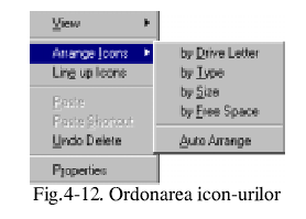 Auto Arrange: ordonarea automata a icon-urilor in cadrul ferestrei, in functie de criteriul stabilit anterior.