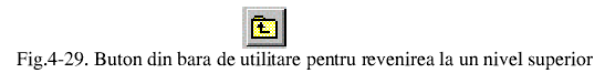 Exercitiu 4-42 (numai sub MS Windows 98): Asigurati-va ca optiunea Open each folder in the same window este activata. In fereastra aplicatiei My Computer efectuati dublu-click pe icon-ul discului C. Observati cum titlul ferestrei curente se modifica din My Computer in denumirea etichetei de volum a discului C. Pentru a reveni la fereastra My Computer apasati urmatorul buton din toolbar, care are drept consecinta revenirea la un nivel superior (up one level):