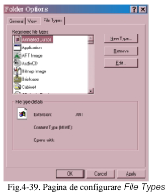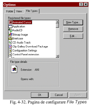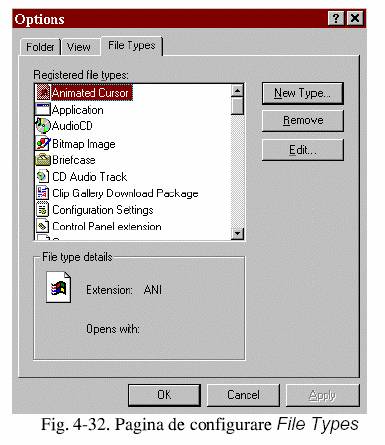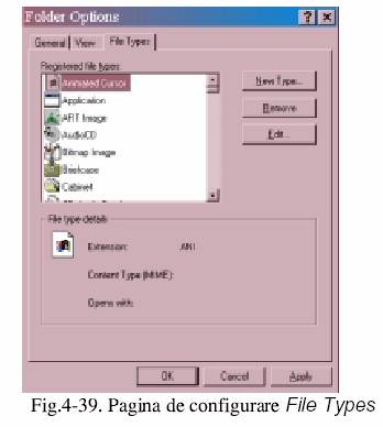 Exercitiu 4-50 (numai sub MS Windows 98): Din lista afisata pe ecran a tipurilor de fisiere inregistrate