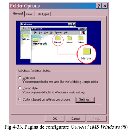 Exercitiu 4-45 (numai sub MS Windows 98): Inchideti fereastra My Computer. Observati ca denumirile icon-urilor de pe desktop sut subliniate. In acest caz, cum esterealizata selectia? Cum se deschide un folder?