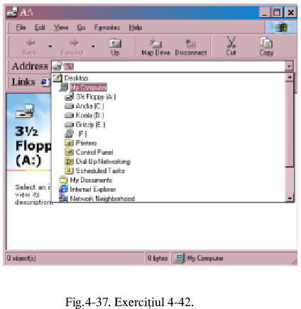 Exercitiu 5-54 (numai sub MS Windows 98): Reveniti la fereastra My Computer prin apasarea butonului intitulat Back din bara cu utilitare Standard Buttons