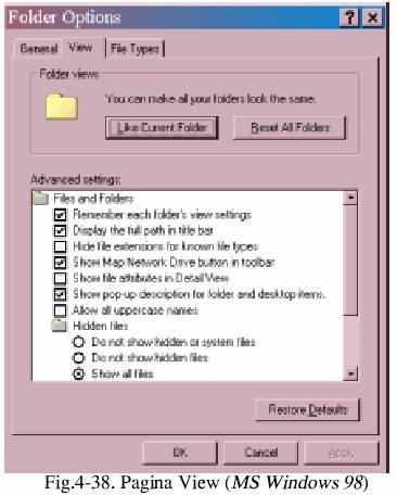 Exercitiu 4-48 (numai sub MS Windows 98): Activati optiunea Show all files, dupa care vizualizati directorulradacina al discului C. Cate fisiere sunt afisate acum?