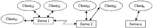 In cadrul partajarii resurselor intr-un sistem distribuit denumirea de serviciu este considerata ca o parte distincta a unui sistem care face managementul unei colectii de resurse asemanatoare si face publica functionalitatea lor utilizatorilor si aplicatiilor care apeleaza la ele. Termenul de server se refera la un program care ruleaza pe un computer dintr-o retea si care accepta cereri de la computere din retea, iar cei care trimit cereri poarta numele de clienti, functionalitatea fiind asigurata prin protocolul client/server.