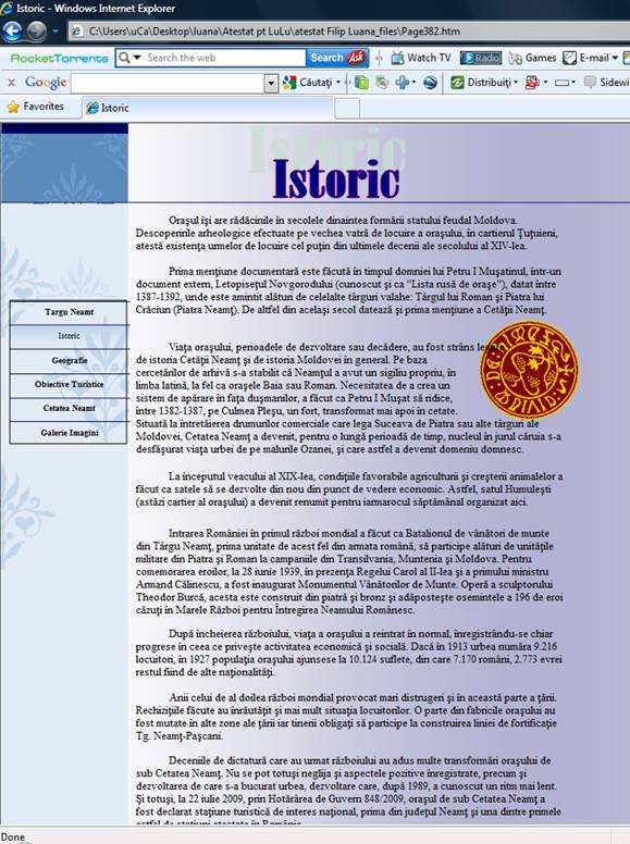 se realizeaza accesand fisierul atestat-Filip Luana.html.