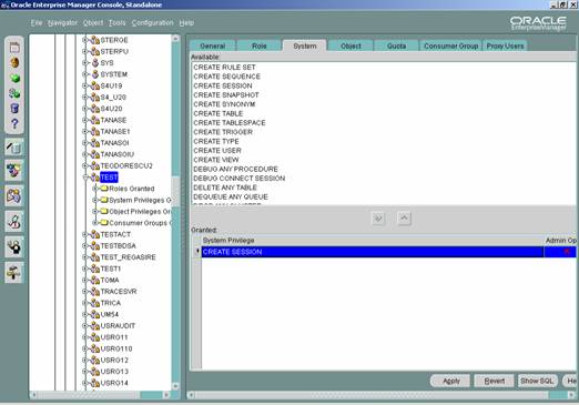 O varianta alternativa de grantare a unui privilegiu sistem este folosirea utilitarului Oracle Entreprise Manager: