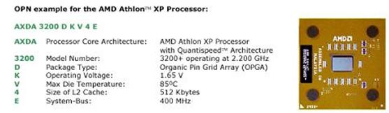 principalele caracteristici ale procesorului Athlon XP, impreuna cu o imagine a procesorului.