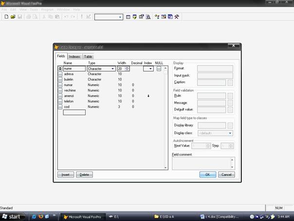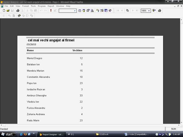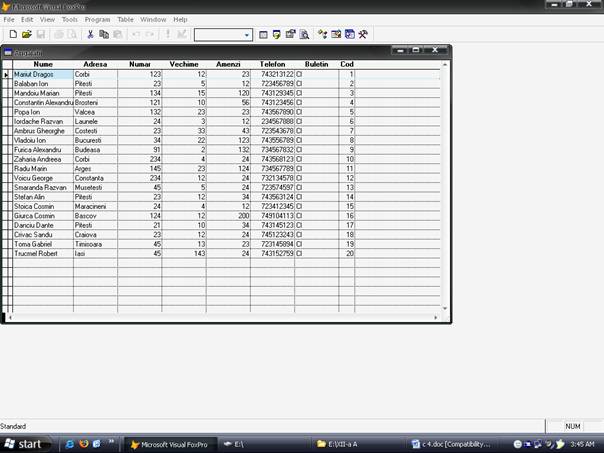 Angajat(Nume, Prenume, Data Nasterii, Adresa, Functia, Salariul)