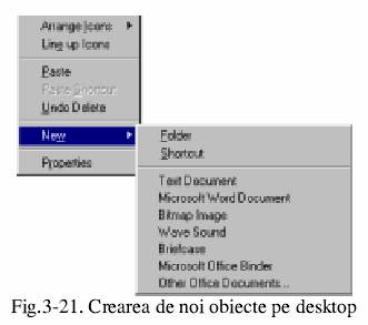unor obiecte noi si dispunerea lor pe desktop. Varietatea de obiecte ce pot fi create este data