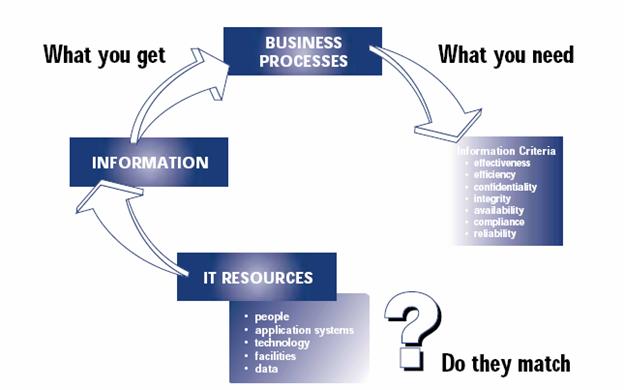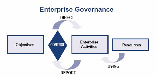 Intreprinderile sunt guvernate de practici general acceptate ca bune (sau cele mai bune), pentru a asigura faptul ca intreprinderea isi atinge scopurile - asigurare care este garantata de anumite controale. Din aceste obiective reiese directia organizatiei care dicteaza anumite activitati ale intreprinderii pentru care se folosesc resursele acesteia. Rezultatele activitatilor intreprinderii sunt masurate si raportate, asigurand reviziile constante si mentinerea controalelor, incepand ciclul din nou. De asemenea, IT este guvernata de practici bune (cele mai bune), pentru a asigura faptul ca informatiile intreprinderii si tehnologia aferenta sprijina obiectivele in afaceri, ca resursele sunt utilizate intr-un mod responsabil, iar riscurile sunt gestionate corespunzator. Aceste practici formeaza baza pentru orientarea activitatilor IT care pot fi caracterizate ca planificare si organizare, dobandire si implementare, livrare, sprijinire si monitorizare in dublu scop: acela de gestionare a riscurilor (pentru a atinge siguranta, incredere si respectare) si de realizare beneficii (cresterea eficacitatii si a eficientei). Rapoartele sunt emise in baza informatiilor legate de activitatile IT si sunt comparate cu diferite practici si controale, iar ciclul este reluat.