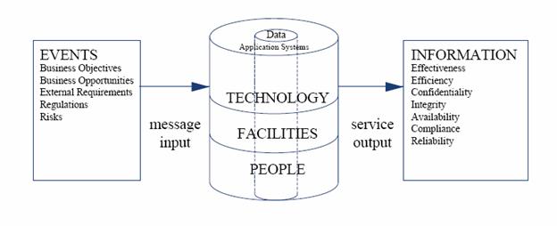 Pentru a fi siguri ca cerintele de afaceri pentru informatii sunt indeplinite, trebuie sa se defineasca, implementeze si monitorizeze masuri adecvate de control a acestor resurse. Cum pot organizatiile sa fie satisfacute de faptul ca informatiile pe care le primesc au caracteristicile de care au nevoie? Aici este necesar un cadru al obiectivelor de control IT. Diagrama urmatoare ilustreaza acest concept.