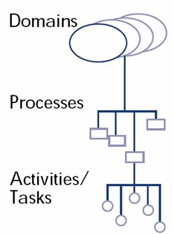 CobiT defineste activitatile IT, intr-un model generic de proces, in patru domenii. Aceste domenii sunt Planificarea, Organizarea, Achizitia si Implementarea, Furnizarea si Sprijinul, si Monitorizare si Evaluare. Domeniile se incadreaza in zonele traditionale de responsabilitate a IT-ului pentru planificare, constructie, operare si monitorizare. Cadrul CobiT asigura un model de referinta pentru proces si un limbaj comun pentru toata lumea din intreprindere pentru a vedea si gestiona activitatile IT. Incorporarea unui model operational si a unui limbaj comun pentru toate partile afacerii care sunt implicate in IT este unul din cei mai importanti pasi catre o buna guvernare. De asemenea, ofera si un cadru pentru masurare si monitorizare a performantei IT, pentru comunicare cu furnizorii de servicii si pentru integrarea celor mai bune practici. Un model de proces incurajeaza detinatorii de procese, permitand definirea responsabilitatii si contabilitatii.