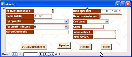 Ca si buletinele de vanzare sau cumparare s buletinele de miscare trebuie mai intai vizualizate si apoi tiparite. Cu ocazia tiparirii ele sunt inregistrate automat in tabelul incasari-plati si tot atunci se actualizeaza soldurile valutelor afectate de miscarea respectiva.