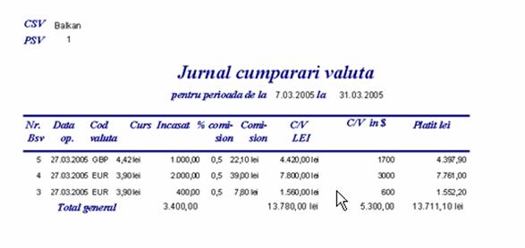 rapoartelor cerute de legislatia in vigoare si anume: Jurnal cumparari valuta,