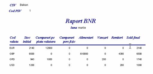 respectiv de vanzare valuta, se cere data pentru care se va elabora raportul.