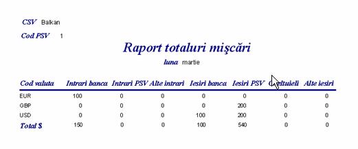 - miscari de valuta intre banci si casa de schimb sau un punct de schimb valutar apartinand casei de schimb care poseda programul;