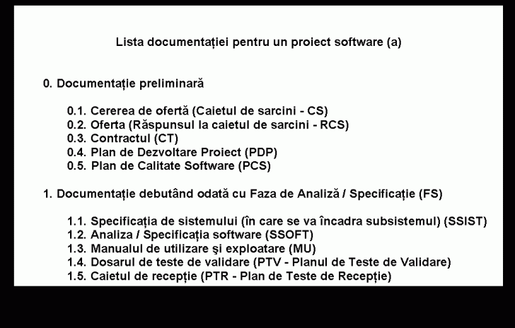 (Slide 76 - Lista documentatiei pentru un proiect software (a))