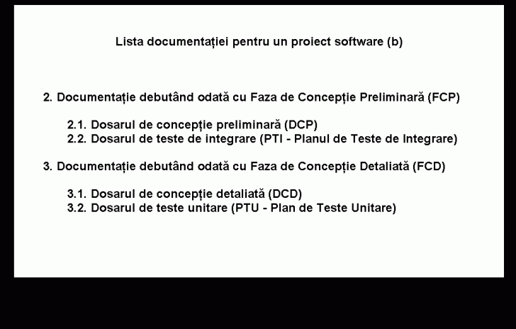 (Slide 77 - Lista documentatiei pentru un proiect software (b))