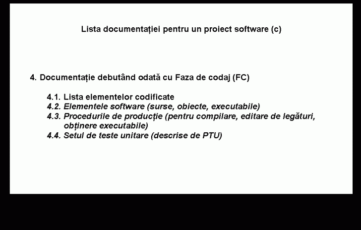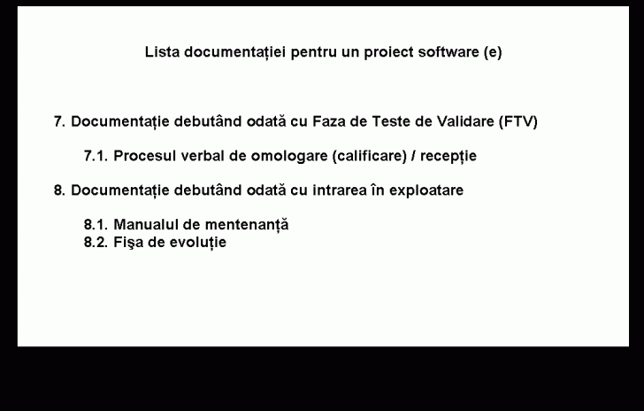 (Slide 78 - Lista documentatiei pentru un proiect software (c))