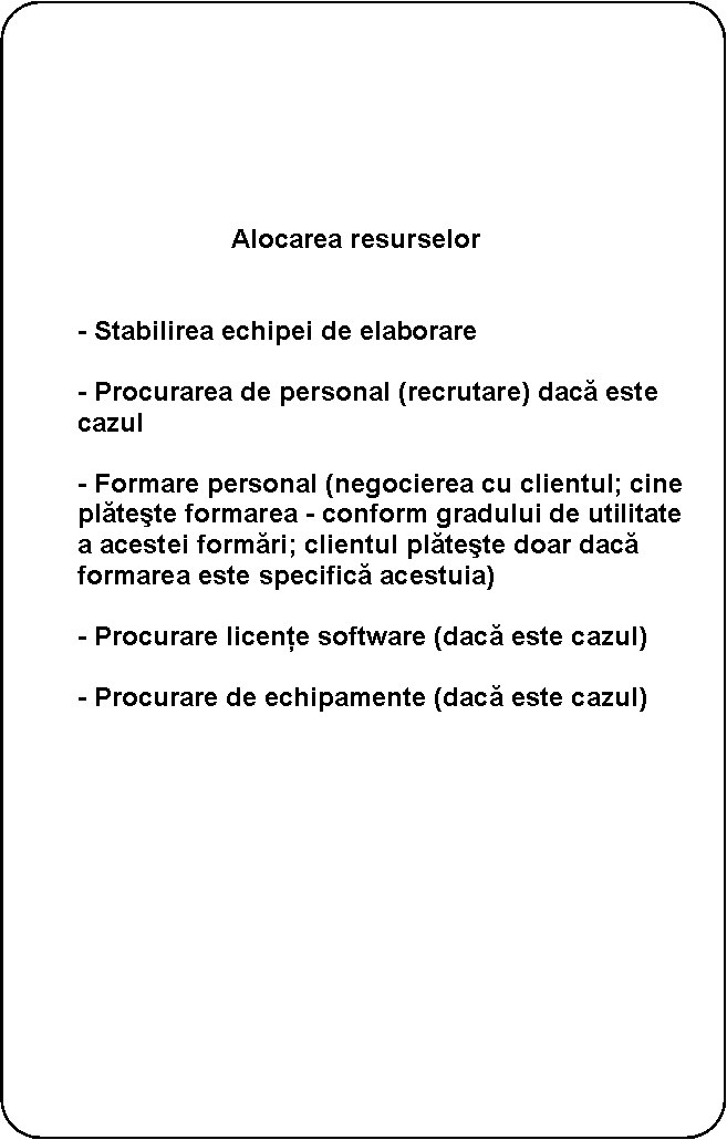 - Formare personal (negocierea cu clientul; cine plateste formarea - conform gradului de utilitate a acestei formari; clientul plateste doar daca formarea este specifica acestuia)