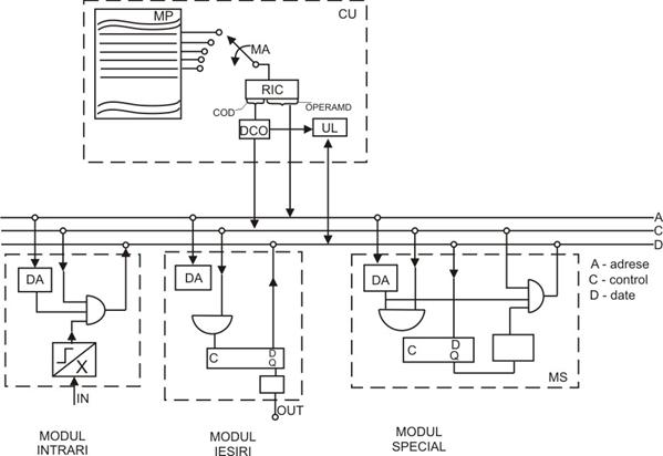 controlului (destul de evident!) a unui proces sau, mai general, a unei interactiuni caracteristice cu mediul exterior, fara sa fie necesara interventia operatorului uman. Primele controlere au fost realizate in tehnologii pur analogice, folosind componente electronice discrete si/sau componente electromecanice (de exemplu relee). Cele care fac apel la tehnica numerica moderna au fost realizate initial pe baza logicii cablate (cu circuite integrate numerice standard SSI si MSI ) si a unei electronici analogice uneori complexe, motiv pentru care 'straluceau' prin dimensiuni mari, consum energetic pe masura si, nu de putine ori, o fiabilitate care lasa de dorit.