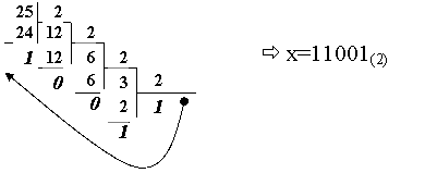 Consideram numarul intreg x=25 in baza 10. In baza 2 numarul x va avea reprezentarea:
