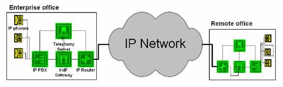 Figure 1O retea VoIP, conectata la o centrala PSTN prin intermediul Gateway-urilor