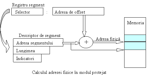 In modul protejat exprimarea adresei se face la fel prin adresa de segment si adresa de offset, insa cu anumite amendamente: