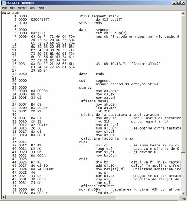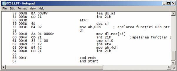 mov ah,09h ;apelarea functiei 09h ptr afisarea unui mesaj a carui adresa ;relativa e in dx