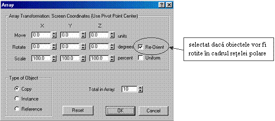 Repozitionarea punctului de pivotare (optiunea Adjust Pivot) este necesara si la realizarea retelelor polare deoarece el va fi centrul retelei create :