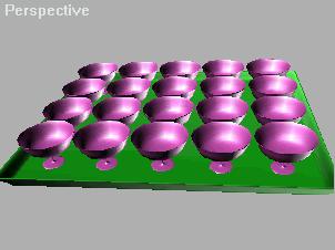 Indicatii : Tava pe care stau paharele se realizeaza tot cu functia Lathe reducand numarul de laturi (parametrul Segments) la 4.