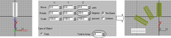 poate folosi la realizarea unui sir simplu de entitati. Pentru aceasta se modifica parametrul Number of copies. Pentru a dispune reteaua dupa una dintre